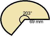 Q3) Find the length of the arc to 3sf. [ 181 mm]