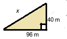 Q2) Find the missing length x to the nearest m . [ 90.0 m]