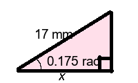 Q5) Find the missing length x of the triangle to 1-dp. [ 16.7 mm]