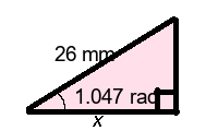 Q3) Find the missing length x of the triangle to 1-dp. [ 13.0 mm]