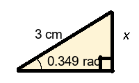 Q3) Find the missing length x of the triangle to 1-dp. [ 0.3 mm]