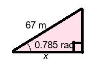 Q4) Find the missing length x of the triangle to 1-dp. [ 47.4 m]