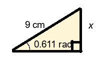 Q1) Find the missing length x of the triangle to 1-dp. [ 5.2 cm]
