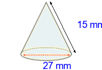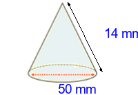 Q2) Calculate the radius of this cone to 3sf. [ 57 \(mm\)]