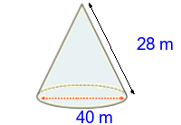 Q3) Calculate the radius of this cone to 3sf. [ 80 \(cm\)]
