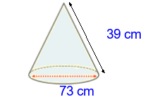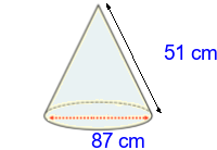 Q5) Calculate the radius of this cone to 3sf. [ 91 \(cm\)]