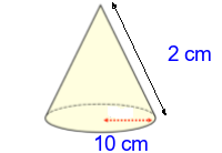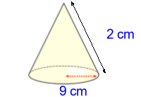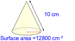 Q2) Calculate the surface area of the cone to 3sf. [ 377 \(cm^{2}\)]