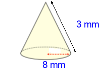 Q4) Calculate the surface area of the cone to 3sf. [ 276 \(mm^{2}\)]