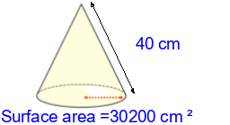 Q4) Calculate the radius of this cone to 3sf. [ 62 \(cm\)]