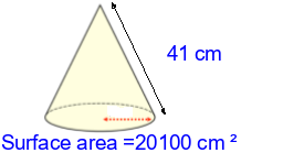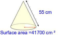 Q1) Calculate the radius of this cone to 3sf. [ 59 \(cm\)]