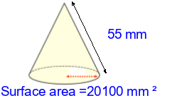 Q4) Calculate the surface area of the cone to 3sf. [ 1210 \(mm^{2}\)]